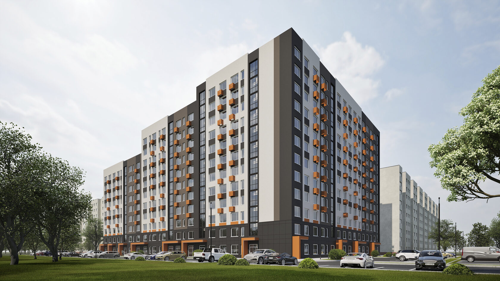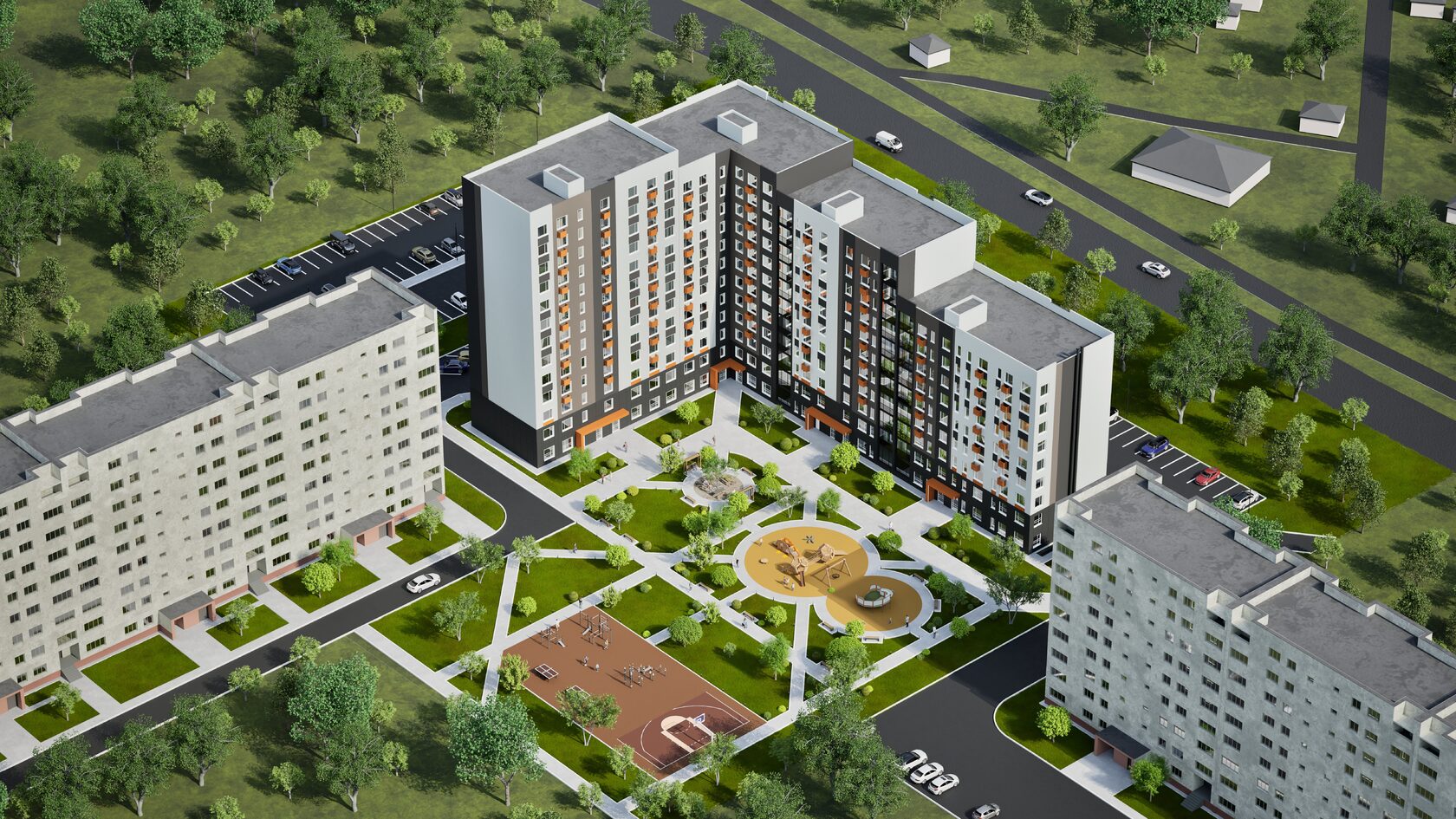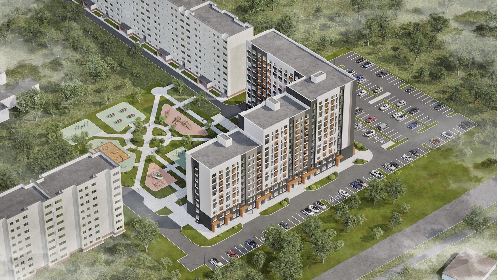 открытый паркинг позволит разместить машины жильцов и посетителей комплекса;