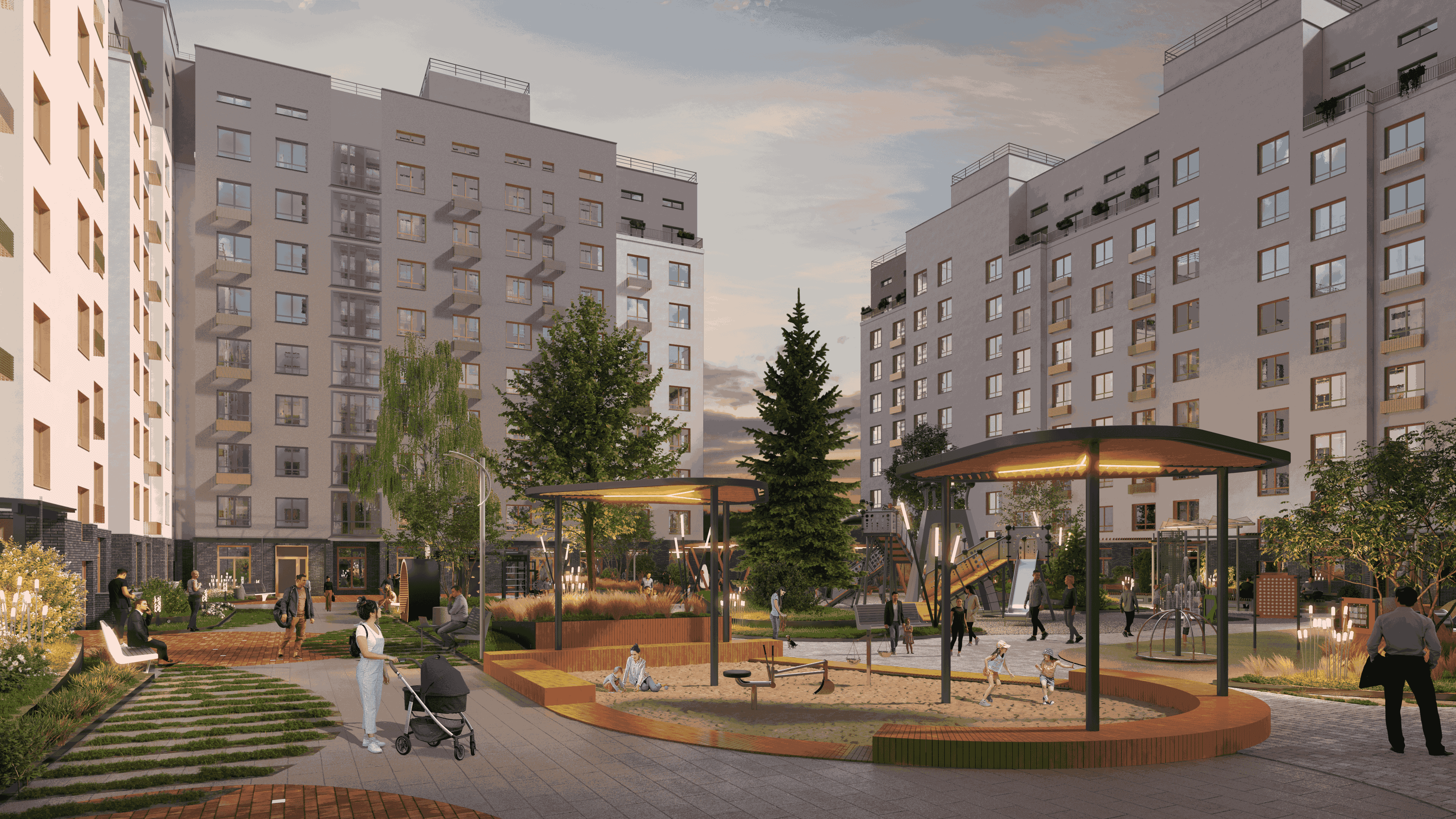 обустроенные игровые, спортивные площадки;