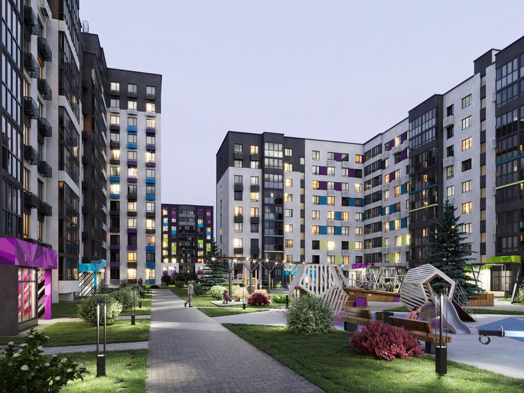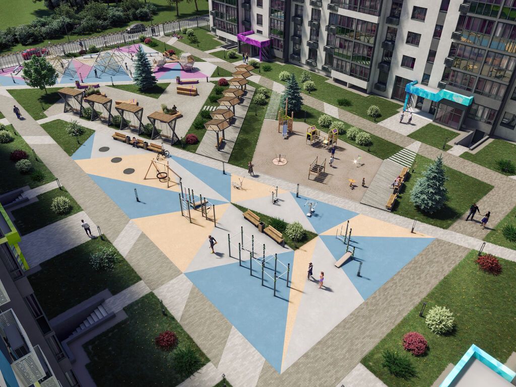 Двор представляет собой пространство, где транспорт и жители не пересекаются, а парковки расположены за его пределами. Внешне он похож на парк – с большим объемом озеленения, ландшафтным освещением, безопасными площадками для детей всех возрастов со специальным мягким покрытием. Здесь предусмотрены идеальные сценарии для жизни: интересный досуг малышей и подростков, спокойный и приятный отдых для взрослых.