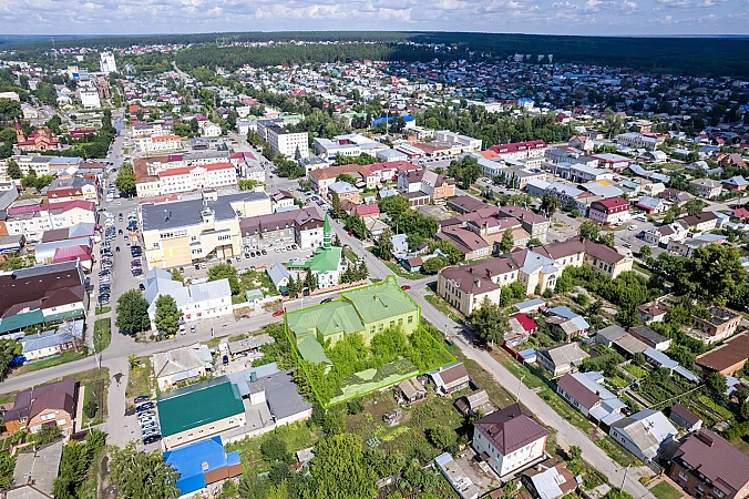 Имущественный комплекс располагается в центральной части города на первой линии улицы. Ближайшее окружением представлено объектами исторической застройки религиозного и социально-культурного назначения, а также коммерческой застройкой.