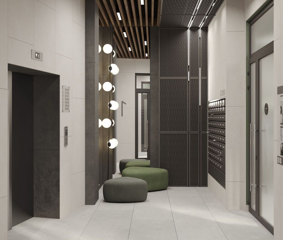 Интерьеры лобби выполнены по индивидуальным дизайн-проектам. В отделке используются натуральные материалы, минималистичные формы и современные акценты.