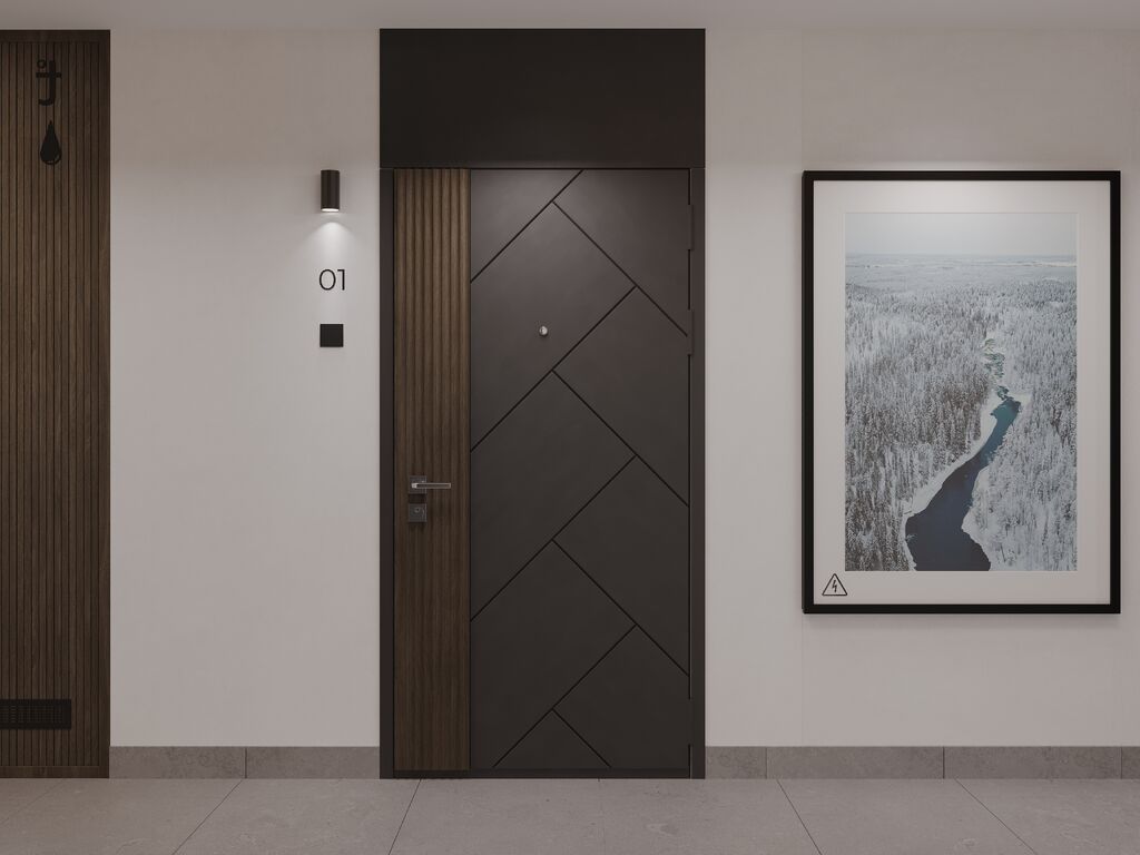 Общий стиль проекта продолжают входные группы. В каждом подъезде реализован авторский дизайн, где акцент сделан на практичность и современный минимализм. Удобная и понятная навигация позволяет гостям быстро найти нужную квартиру. Для колясок и велосипедов предусмотрено специальное помещение, доступ в которое есть только у жителей дома.