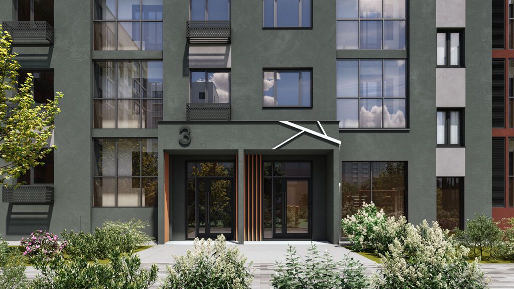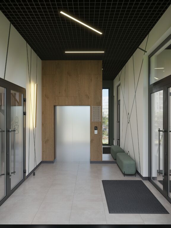 Подъезды комплекса всегда наполнены светом солнца благодаря остекленным входным группам. Жители чувствуют себя в безопасности, потому что в их поле зрения есть все, что происходит и на улице, и в холле.