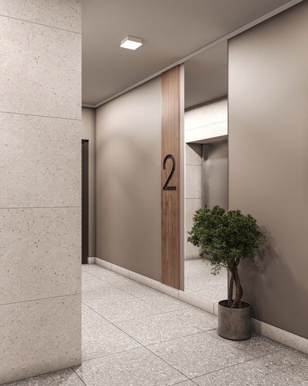 Интерьеры лобби выполнены по индивидуальным дизайн-проектам. В отделке используются натуральные материалы, минималистичные формы и современные акценты.