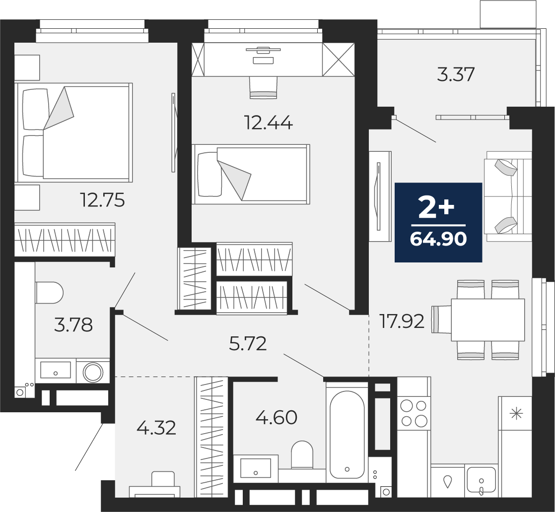 Купить 3к квартиру 81 м² в ЖК Город Новаторов